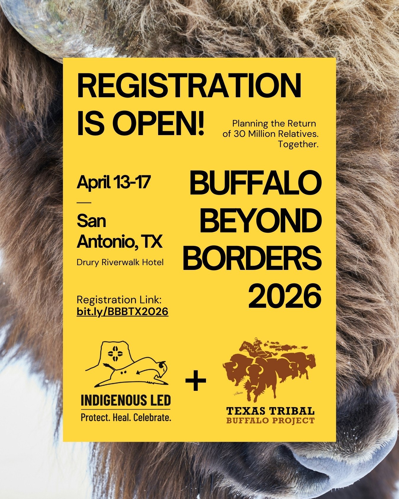 (The meat from the harvest will be going to the mothers in the Meat for Mamas Program and the San Antonio Health Equity Network.)Registration and transportation for the Floresville field trip are fully included in the Buffalo Beyond Borders registration and are a central part of the gathering, not an optional add-on. Donations to the Texas Tribal Buffalo Project are welcomed and appreciated, and can tickets can be purchased here.